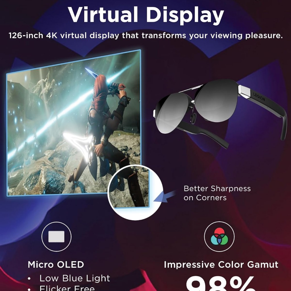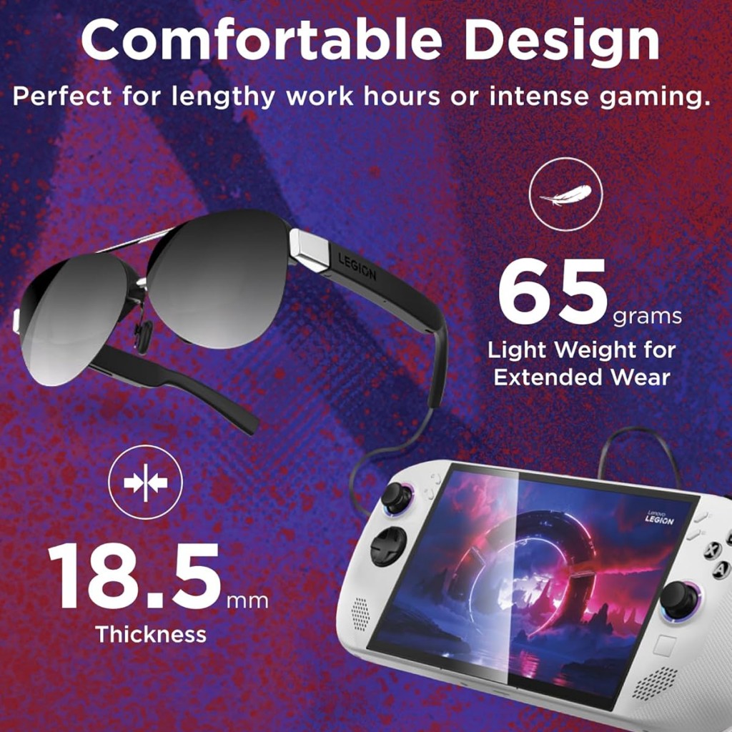 Lenovo Legion Glasses Gen 2 - Micro-OLED Personal Wearable Monitor for Gaming & Movies, FHD 120Hz Plug-and-Play Display Legion Go & USB-C Devices, High-Fidelity Audio & Privacy