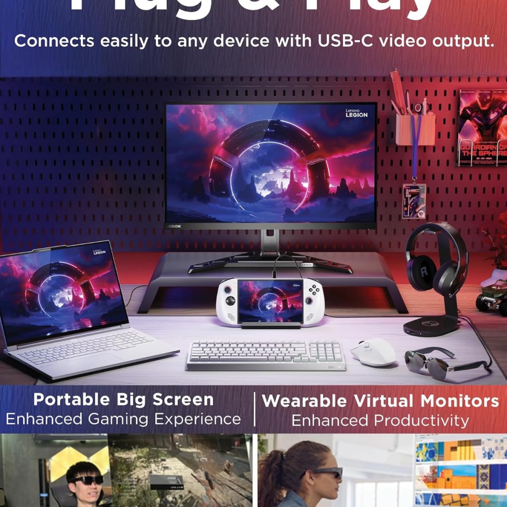 سازگار با چندین دستگاه: این عینک با طیف گستردهای از دستگاهها از جمله لنوو لژیون گو، لپتاپها، استیم دک و موارد دیگر سازگار است. آنها از اکثر دستگاههای USB-C با عملکرد کامل و خروجی ویدیوی DP برای حداکثر تطبیقپذیری پشتیبانی میکنند.
