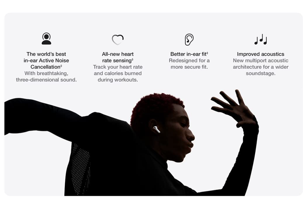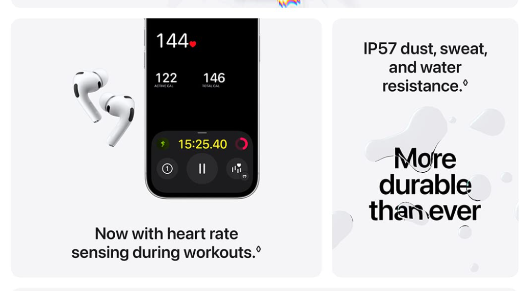 هدفون بیسیم اپل ایرپادز پرو ۳، حذف نویز فعال، ترجمه زنده، سنجش ضربان قلب، قابلیت سمعک، هدفون بلوتوث، صدای فضایی، صدای با کیفیت بالا، شارژ USB-C