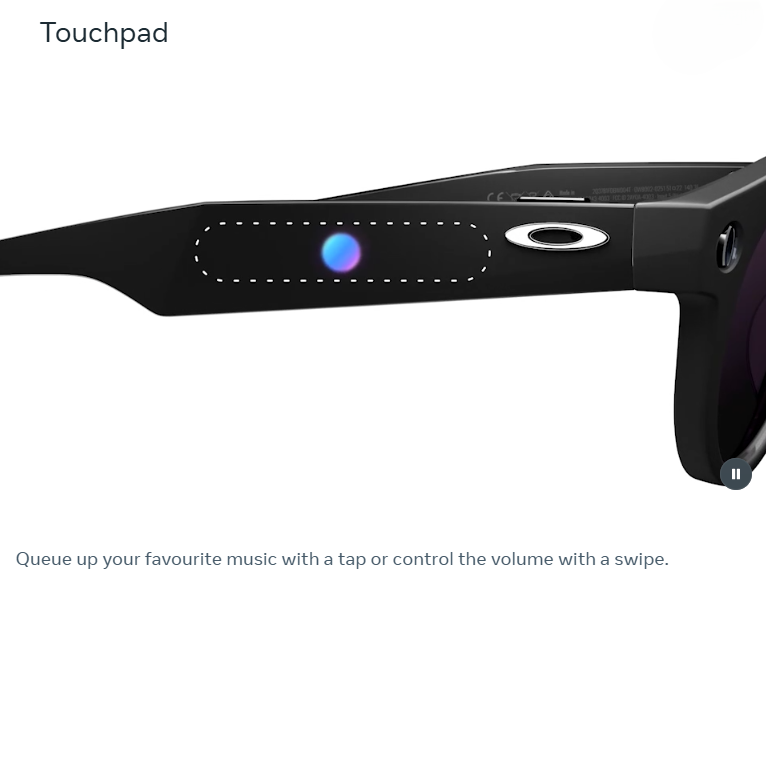 درست مانند عینک متا ری-بن، مدل متا اوکلی OAKLEY META دوربین، اسپیکرهای داخلی و میکروفونهایی دارد که درون قاب عینک جاسازی شدهاند. پس از اتصال عینک به گوشی، میتوان از آن برای گوشدادن به موسیقی یا پادکست، برقراری تماس یا چت با Meta AI استفاده کرد.