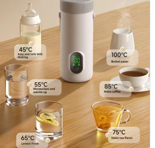 این کتری برقی قابل حمل شش دمای پیش تنظیم به ترتیب 45 درجه سانتیگراد، 55 درجه سانتیگراد، 65 درجه سانتیگراد، 75 درجه ی سانتیگراد، 85 درجه سانتیگراد و 100 درجه سانتیگراد را برای نوشیدنی های مختلف را اراِئه می دهد.