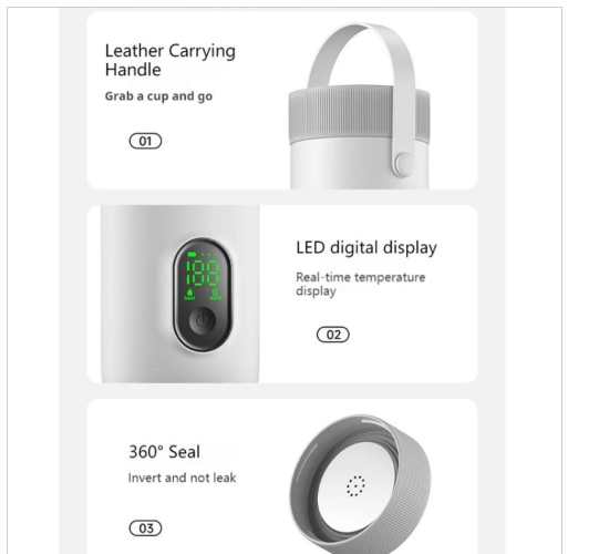 RK-3 Wireless Electric Heating Travel Kettle Portable Boiling Water Cup with 6-Temperature Settings(White)