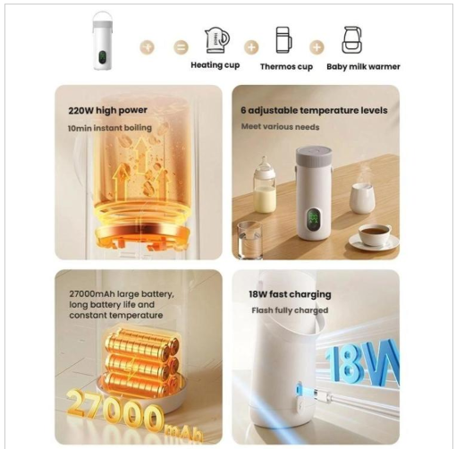 باتری قابل شارژ بزرگ ۲۷۰۰۰ میلیآمپر ساعت (۶×۴۵۰۰ میلیآمپر ساعت) برای چندین بار جوشاندن