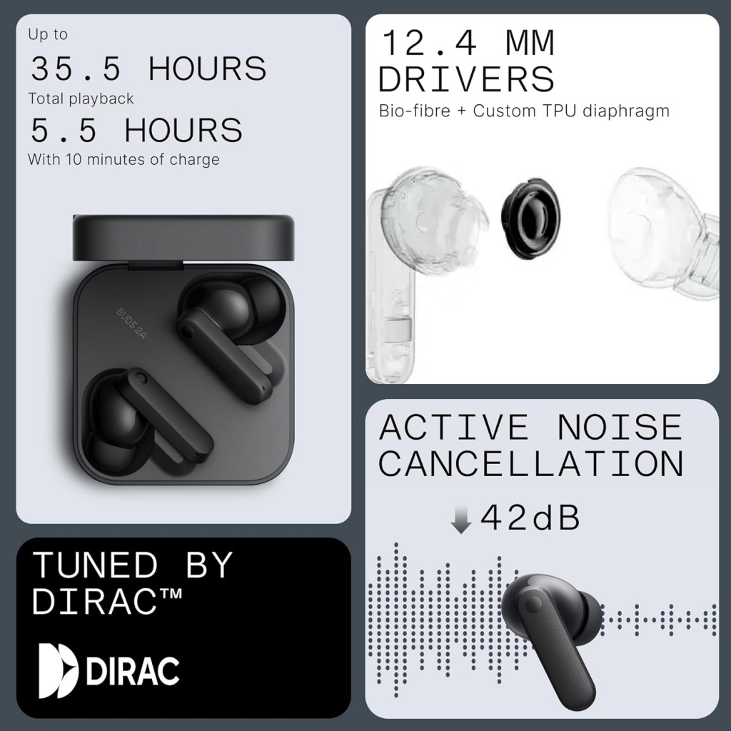 CMF Buds 2a Wireless Earbuds 2025 New Active Noise Cancelling 42dB Hybrid ANC Bluetooth Headphones, 12.4mm Dynamic Driver for Big Bass, 4 Mic Clear Calls, Sport Ear Buds for iPhone, Android