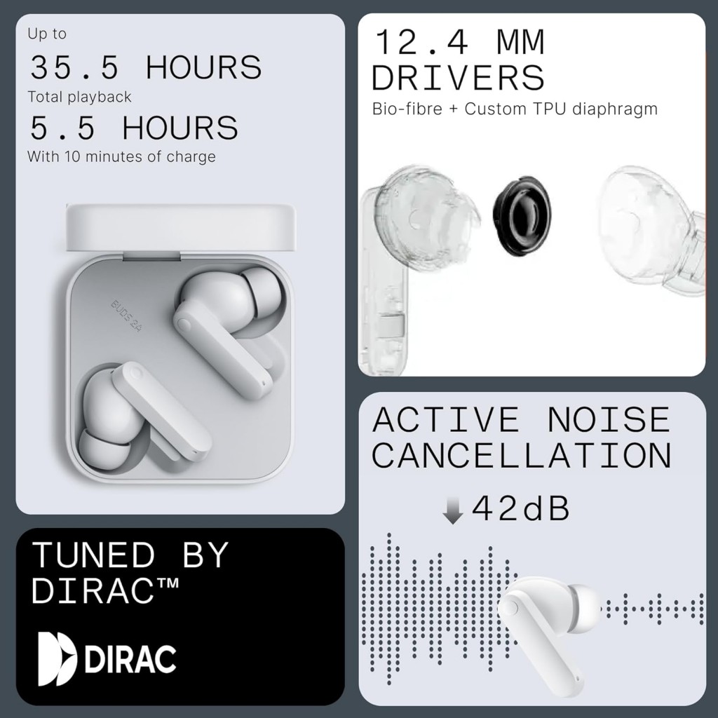 DIRAC و Daily ANC - DIRAC، یکی از ارائه دهندگان مشهور صدا برای خودروهای لوکس، اکنون با CMF برای تنظیم مشترک، درایورهای بیوفیبر ۱۲.۴ میلیمتری در سطح استودیویی، صدایی گرم، صداهای میانی غنی و بیس واضح/شدید (با امکان خاموش و روشن کردن) ارائه میدهند. ،حذف نویز فعال هوشمند ۴۲ دسیبل به طرز شایستهای برای رایجترین سناریوهای شما تنظیم شده است.