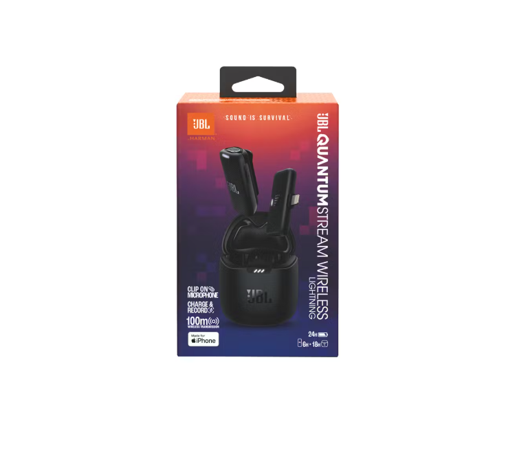 میکروفون بیسیم JBL Quantum Stream با پورت USB-C - میکروفون استریم بیسیم پوشیدنی برای ضبطهای شفاف، 24 ساعت زمان ضبط، شارژ سریع پلاس، دارای شیشه جلو برای کاهش نویز