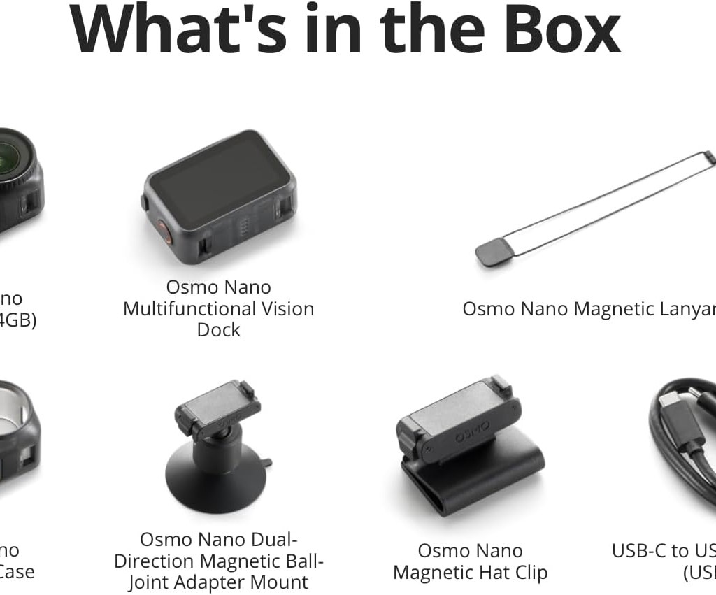 DJI Osmo Nano Standard Combo (128G,64G) - Small 4K/60fps Vlogging Camera with a 1/1.3″ Sensor, 143° Wide FOV Video, 200-Min Recording, Swift Content Transfer, Magnetic POV Cam 4K for Sports, Vlog