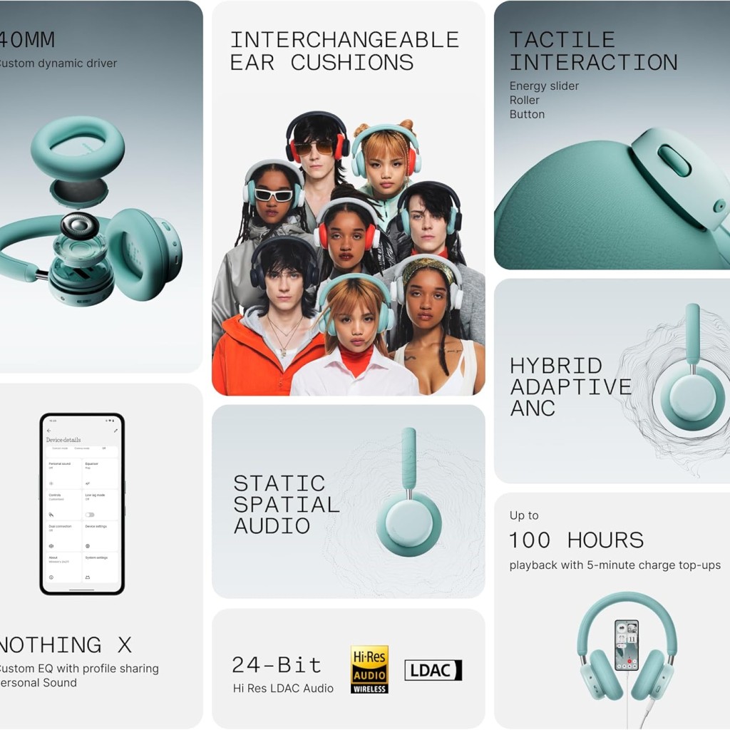 این هدفون جدید ناتینگ از صدای فضایی استاتیک، درایورهای ۴۰ میلیمتری و کدک باکیفیت LDAC پشتیبانی میکند.