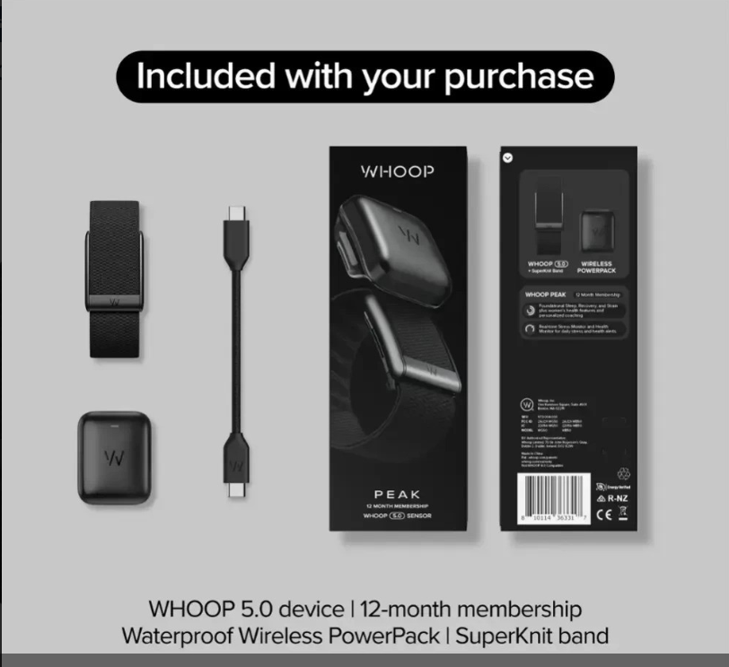 WHOOP Peak Bundle - WHOOP 5.0 Health & Fitness Wearable with 12-Month Membership + SuperKnit Wristband + Wireless PowerPack - 24/7 Activity Tracker with Sleep, Recovery & VO2 Max Insights
